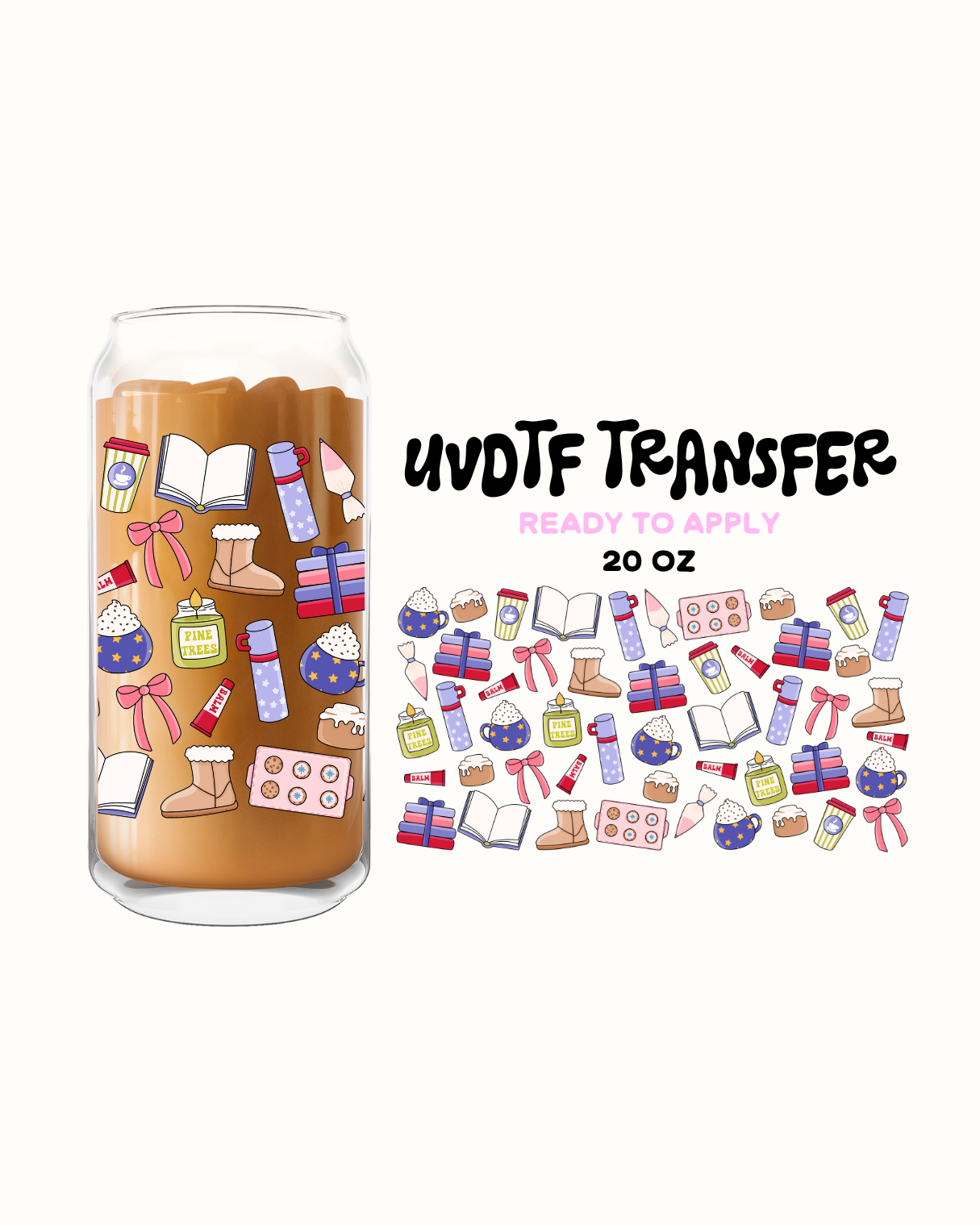 Books and peppermint mocha - UVDTF 20oz Cup Wrap
